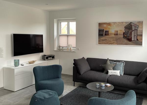 Unser „Watt-gemütlich-Haus“ bietet jede Menge Komfort und Wohlfühlatmospäre. Ideal passt es für zwei bis vier Erwachsene, aber auch eine Familie mit Kindern wird sich hier wohlfühlen. Wer sein Tablet oder Notebook nutzen möchte, wird sich freuen: Da der Eigentümer aus der IT-Branche kommt, gibt es überall schnelles WLAN und nahezu überall USB-Anschlüsse. Jeder Fernseher ist ein Smart TV. „Jeder Fernseher“ bedeutet: Es gibt in jedem (!) Zimmer ein TV – außer in der Küche und den Bädern. Watt-gemütlich bedeutet auch: Fußbodenheizung, elektrische Handtuchheizung, Fliegengitter, elektrische Rollläden und zwei PKW-Stellplätze am Haus.